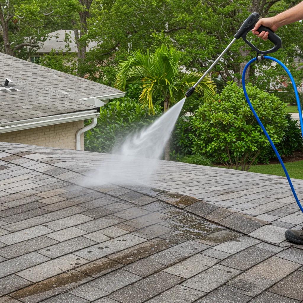 Sarasota’s humid subtropical climate makes roof cleaning essential every 1–3 years. Three primary approaches tackle organic growth and grime.