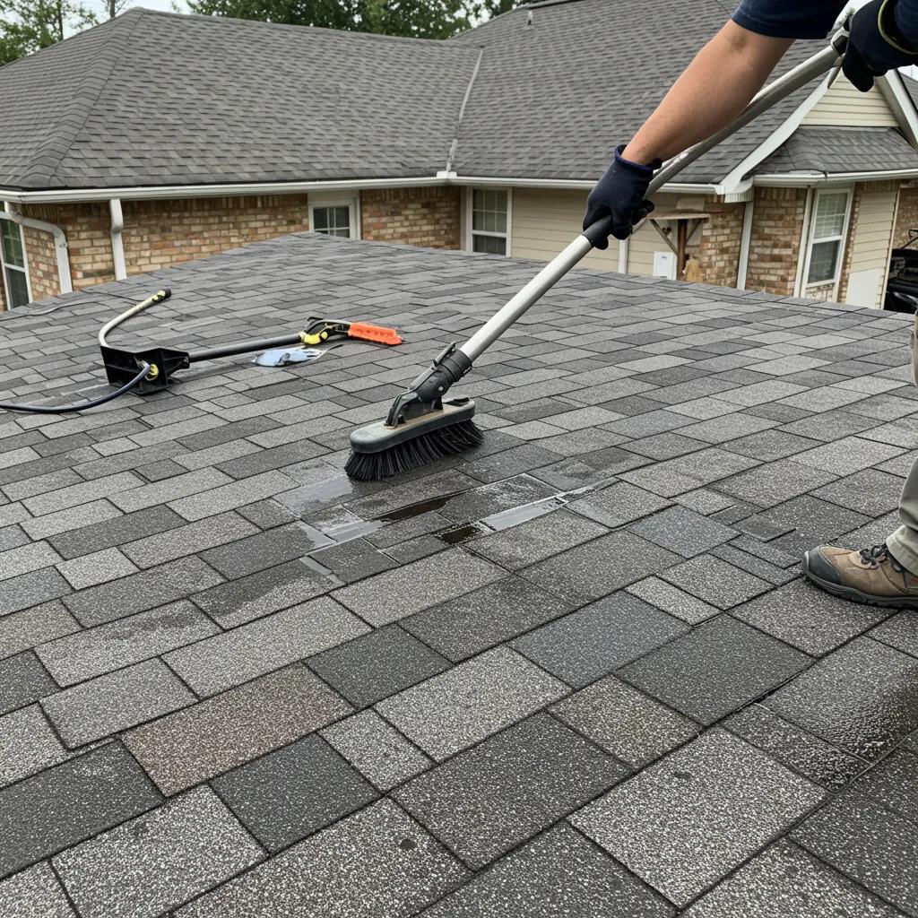 This hands-on method provides targeted removal on small sections or around flashings and vents. It demands significant labor hours, increased safety risk, and prolonged drying periods. Traditional cleaning often serves as a supplement to pressure or soft washing when spot treatment is required.